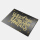 Melhore seu sotaque ao ar livre com um tapete de porta feito por medida. Bem-vindos Mortais tolos Engraçados Citação de Cabeça Ghoulish Design Mat. Preto e Dourado com Confetti Glitter Dourado. Excelente de presente para o Halloween.