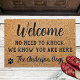 Bem-vindos a convidados com esta porta engraçada! "Não precisa bater, nós sabemos que você está aqui." Os Cães. Esta porta de boas-vindas apresenta coir natural rústico e design preto com pegadas. COPYRIGHT © 2022 Judy Burrows, Black Dog Art - Todos Os Direitos Reservados. Bem-vindos Não É Preciso Tocar Engraçado Pet Dog Coir Entrada Porta