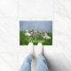 A fotografia dos cygnets bonitos que se estão encontrando na grama com a boa vinda do texto, mas você pode igualmente mudar ou suprimir do texto se você quer, ou você pode mudar a pia batismal e a cor do texto personalizando o produto.
