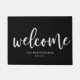 Este doormat caracteriza a palavra "boa vinda" em um roteiro branco moderno com nome opcional abaixo. A cor do fundo pode ser mudada selecionando uma cor da paleta usando a ferramenta da personalização ou você pode entrar seu próprio código do hex.
