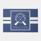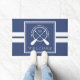 Esteira de porta bem-vinda náutica para sua casa do lago com uma corda e um monograma da pá em azul e em branco. Adicione seu nome de família, inicial, e o ano estabelecido.