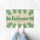 Doormat verde tropical da folha da samambaia da aguarela com a palavra "boa vinda" no texto branco assim como no seu nome de família. Adicione alguns estilo e divertimento a sua entrada com este doormat tropical contudo elegante.