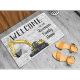 Bem-vindo à Página Inicial do "Nome da sua Família" ou mude para um nome de empresa ou empresa. Um tapete de boas-vindas com tema escavador para o operador de equipamentos pesados. Personalize o nome da família.