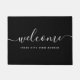 Porta com a palavra "Bem-vindo" em um roteiro de caligrafia moderno e que você pode personalizar com seu nome de propriedade ou endereço de rua tudo em uma cor de fundo editável (clique em personalizar para mudar) que é perfeita para sua própria casa ou sua propriedade alugada, hotel, cama e café da manhã, etc.