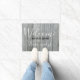 A porta da casa de fazendeiros se reúne para receber convidados em estilo. O fundo da madeira rústica adiciona um olhar de canto. Personalize com o nome da família.