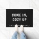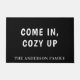 Um fundo preto, texto branco. Personalize e adicione seu nome de família. Texto: Entre, Coloque-se