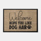 Apresentando nossa hilariante porta-burlap que fará seus hóspedes rirem em voz alta! O tapete diz: "Bem-vindo, Espero Que Você Goste De Cabelo De Cachorro". Perfeito para amantes de cães, esta porta é sarcástica e encantadora. O tapete é feito de materiais duráveis que resistirão ao uso diário e às condições meteorológicas. Faça uma declaração enquanto mantém seus andares limpos com esta porta de um tipo.