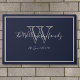 Nome do Script do Monograma Moderno de Música Boas-vindas. Branco personalizado, design de monograma de cinza com noiva e sobrenome de noiva e de noivos e data estabelecida sobre fundo azul marinho. Um presente legal único para recém-casados. Adorável pela sua nova vida juntos. Clique em personalizar este modelo para personalizá-lo rápida e facilmente. Navios no mundo todo rápido. Nome do Script do Monograma Moderno de Música Boas-vindas. Criado pelo artista RjFxx *Todos os direitos reservados. #WelcomeDoormat #Newlyweds