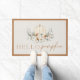 Esta porta apresenta flores de terracotta, abóbora de creme fofo e uma combinação divertida de fontes modernas com as palavras "olá, abóbora". Este tapete de porta é perfeito para estilar o seu dentro de porca do outono ou para fora!