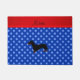 O teste padrão de bolinhas azul moderno, na moda, chique e feminino com uma listra vermelha com um cão do wiener do dachshund personalizado com seus presentes conhecidos ou presentes do monograma ou suas iniciais ou você preto e marrom pode adicionar seu próprio texto pessoal. Ideias bonito do presente do dachshund para proprietários do animal de estimação e amantes do cão.