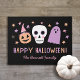 Este tapete super divertido da porta do Dia das Bruxas é perfeito para a temporada de outono e para dar as boas-vindas a truques ou tratadores! Apresenta um crânio puxado pela mão, fantasma, abóbora-de-jack-lanterno (vestindo um chapéu de bruxa), e estrelas, juntamente com a tipografia moderna, lendo, "Feliz Halloween!" Um modelo de texto é incluído para facilitar a personalização. O esquema de cores inclui rosa pastel, roxo e pêssego. *Trabalho de arte de Orabella Impressões.