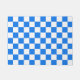 This doormat features a classic bright blue and white checkerboard pattern.