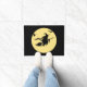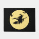Design temático do Dia das Bruxas com equitação do vôo da bruxa em uma vassoura junto com bastões. A Lua cheia é visível no fundo. Você pode facilmente mudar a cor desta utilização do doormat "personaliza-a" botão. É um design perfeito para presentes do Dia das Bruxas.