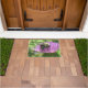 Este bonito tapete de Boas-vindas apresenta um néctar de uma abelha giro de um palito roxo.