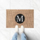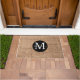 Portão preto e monograma de luxo moderno. Um simples design de na moda com uma incrível borda negra redonda com uma estrutura marrom. Legal monograma branco grande e nome de família no script.