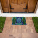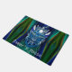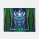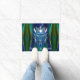 tapete de porta de aparência futurística, com trabalho de arte gráfico de Uma cabeça de robô rosa metálico e vermelha, com correntes elétricas subindo e descendo dela. O texto personalizado, na parte inferior, está pronto para personalizar para ler o que você quer.
