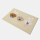 Uma bela ilustração de um cão que recupera o ouro vestindo orelhas de coelho e uma bonita bandana Páscoa. Cercados por ovos decorados de Páscoa, flores de primavera e borboletas.