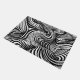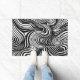 Linhas negras e brancas giram e torcem em um padrão hipnótico criando uma sensação de movimento.