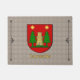 Camacho Historical Shield Mat, sobrenome espanhol, com uma torre de ouro flanqueada por dois pinheiros com estrelas douradas sobre eles em um campo vermelho sobre um fundo estilo cobblestone. O sobrenome espanhol Camacho vem da costa mediterrânica. Seu nome é espanhol? Podemos pesquisar o seu nome para você e fornecer um tapete de porta com braços familiares históricos aqui no Zazzle! Apenas nos pergunte. Excelente para mostrar sua herança familiar ou dar como presente.