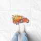 Caminhão de colheita de laranja com abóboras e girassóis nas costas