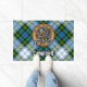 Crachá da crista Campbell rodeado por uma pulseira e fivela sobre o fundo do tartan vestido. Custom Text.