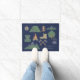 Adicione facilmente o nome do seu parque de campismo favorito e o estado em que está para criar a sua própria porta de acampamento de souvenir ou adicione um nome de família ou outro texto para criar o seu tapete de boas-vindas personalizado para a sua cabine de férias com uma colagem de cenas de acampamento e equipamento ao ar livre em laranja, castanho, azul claro e verde contra um fundo azul marinho. Faz um presente legal para os campistas e qualquer um que ama o excelente ao ar livre. Há ilustrações de montanhas, uma tenda, uma fogueira, uma lanterna, botas de caminhada e muito mais.