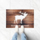 O tapete de porta de campers felizes do celeiro russo andando de alce é perfeito para o seu trailer, camper, casinha minúscula, cabana, casa de lago ou qualquer floresta rústica, paisagem selvagem.