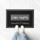 Campers felizes RV ou tapete de porta de cabine, retângulo de cinza com roteiro branco sobre fundo preto. Apenas personalize-o com qualquer nome ou nomes usando o botão "personalizar".