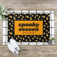 Bem-vindos convidados em estilo assustador com este monograma personalizado de porta de Halloween com um padrão fofo de milho doce em um fundo preto e o texto "Spooky Season". Personalize com o seu nome familiar para um toque festivo, de um tipo. Disponível em vários tamanhos para ajustado de qualquer porta, este tapete durável é perfeito para porchas dianteiras, entradas ou decoração sazonal. Comemore o Halloween com estilo e mantenha sua entrada em casa divertida e funcional.