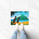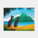 O galgo, o chicote e/ou o galgo italiano silhuetas na areia com folhagem, água e ilha.