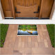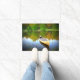 Um tapete de porta mostrado com uma impressão de fotografia de uma canoa numa cena de lago. Personalize este tapete ou comprar como está. Imagem do stock