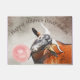 Num fundo de cor aquosa de champanhe, esta pintura em estilo fresco de uma cabra fofa soprando uma bolha de bublegum diz "Fazenda Feliz de Cabra de Cabra" (Você pode mudar o texto de boas-vindas) Caprinos Bem-vindos Mat - excelente para shows de cabras também