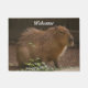 Uma fotografia de uma capybara adora este tapete de boas-vindas.
