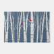 Par de cardeais vermelhos sentados em uma árvore com flocos de neve sobre fundo azul estrelado.