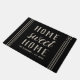 Bem-vindos convidados para a sua casa com esta encantadora casa rustica. Design personalizado apresenta "lar doce lar" em ponto neutro do que a inscrição com seu nome familiar e ano estabelecido abaixo. A faixa de cordas detalhando sobre um fundo preto rico completa a design.