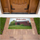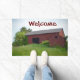 Este tapete de boas-vindas apresenta um velho celeiro vermelho no País Amish da Pensilvânia.