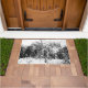 Porta numa cena de inverno de árvores cobertas de neve com fundo de floresta de inverno - fotografia digital em preto e branco
