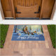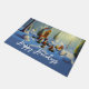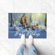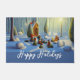 A porta de frente de Feriado Divertido apresenta a cena da floresta de Natal imitável e surreal com árvores com capas de neve, criada com software gerador de IA. O texto "Feriados Felizes" sobre fundo azul é personalizável.