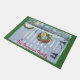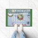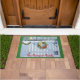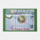 Bem-vindos amigos e família a sua casa com este belo tapete de boas-vindas que retrata uma cena de neve do inverno com uma cerca branca de piquete e uma bela coroa de Natal pendurada nela. Está bordado em verde de Natal e você personaliza com seu nome ou pode mudá-lo para "Bem-vindo à Nossa Casa".