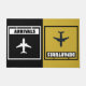 Bem-vindo a casa com nossa charmosa e simples porta de "Chegadas e Partidas", projetada especialmente para famílias piloto ou entusiastas da aviação! Esta porta única mostra uma ilustração de um avião aterrando graciosamente do lado esquerdo, em conjunto com um sinal de enforcamento que diz "Chegadas" enquanto um avião decola à direita, acompanhado de um sinal de enforcamento que diz "Partidas". Perfeito como presente de casa ou para as recém-casadas. Copyright Soar em Style Design LLC.