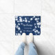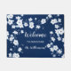 A cereja branca bonito floresce num fundo azul marinho. Personalize-o com o texto de boas-vindas do seu nome de família personalizado.