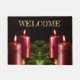 Christmas Celebration Red Candles Green Leaves Doormat. Unique, beautiful, stylish design. Easy to be personalized. Font style, size and colors can be changed. Matching items are available.