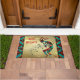 Personalize este Único "Um dos Tipos" de Natal Kokopelli Doormat! Ele apresenta um Kokopelli tocando flauta com notas musicais e dançando em um Dourado fundo de Natal com flocos de neve, cercado por turquesa, bordas laranja e negras e as palavras uplifantes... "Paz na Terra"! Design De Arte Original Pelo Artista Kerry Miller.
