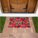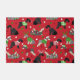 Calcinhas de Natal com sal e pimenta e casacos pretas e prateadas vestem chapéus de Santa, galhadas e suéteres argilosos em fundo vermelho com ornamentos dispersos.