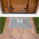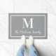 Fresque a entrada da sua casa com esta elegante porta monográfica personalizada em cinzas neutras e cores brancas. Nota, as cores podem ser modificadas. Personalize com o sobrenome da sua família no script e um monograma do estilo serif. Design inclui uma simples borda enquadrada.