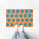 Esta porta tem uma design moderna do século médio de círculos laranja abertos, com círculos teóricos sólidos que atravessam o padrão com linhas verticais lacrimogêneas e linhas horizontais laranja.