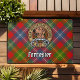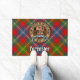 Crachá da crista Clan Forrester rodeado por uma correia e fivela sobre fundo tartano. Custom Text.