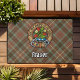 Crachá da crista de clã Fraser cercado por uma pulseira e fivela sobre fundo tartano de caça às intempéries. Texto personalizado.