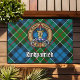 Crachá da crista Clan Kirkpatrick rodeado por uma correia e fivela sobre fundo tartano. Custom Text.