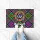 Clan MacDonald do crachá da crista Clanranald rodeado por uma correia e fivela sobre fundo tartano. Texto personalizado.